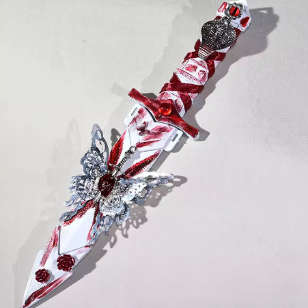 Deze gotische dolk is gemaakt om te fascineren en belichaamt de essentie van donkere elegantie. De gedetailleerde afwerking en krachtige uitstraling maken hem tot een buitengewone blikvanger – als middelpunt van een collectie of als opvallend statement in een ruimte.
